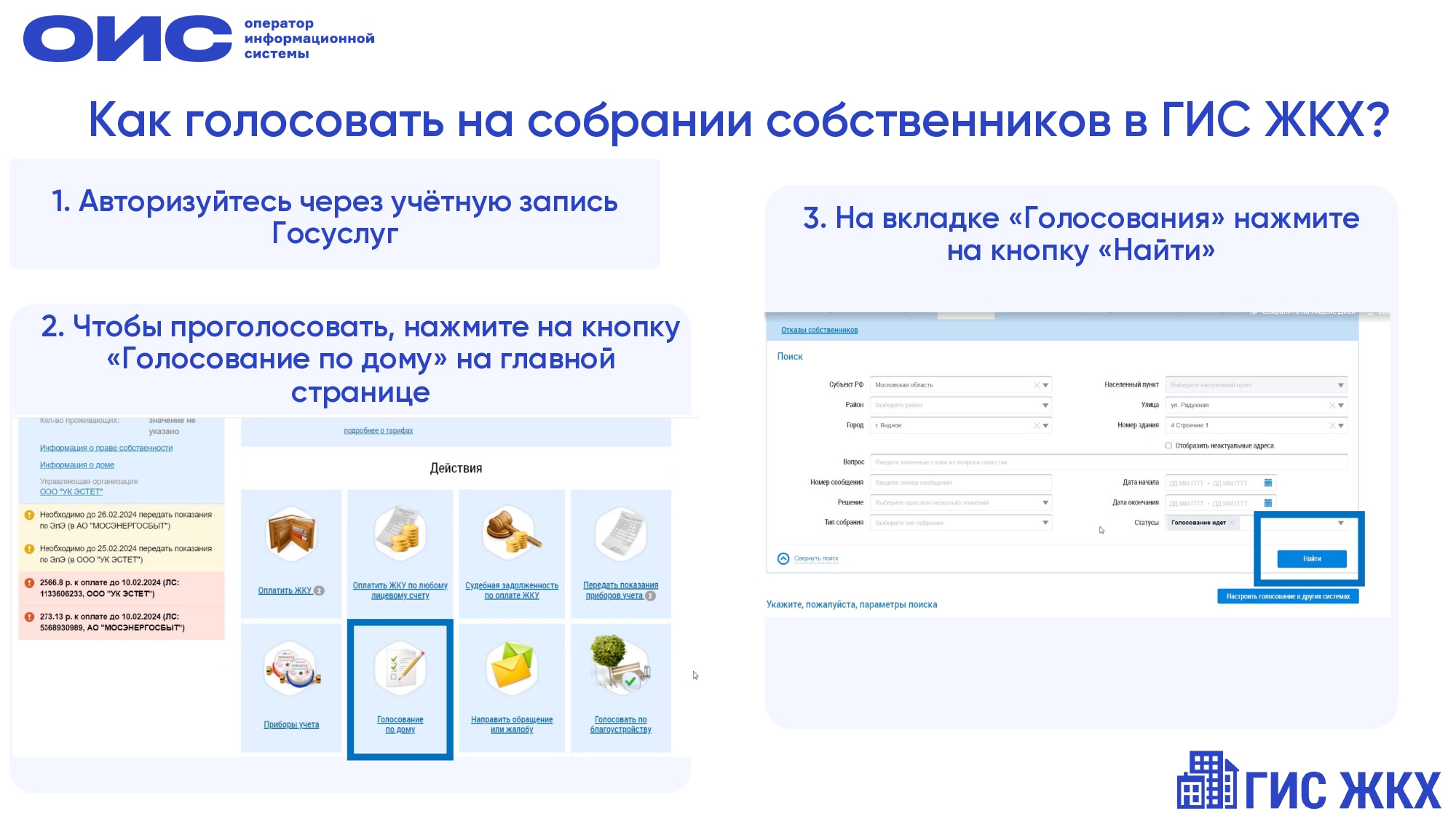 Как голосовать на обших собраниях в ГИС ЖКХ